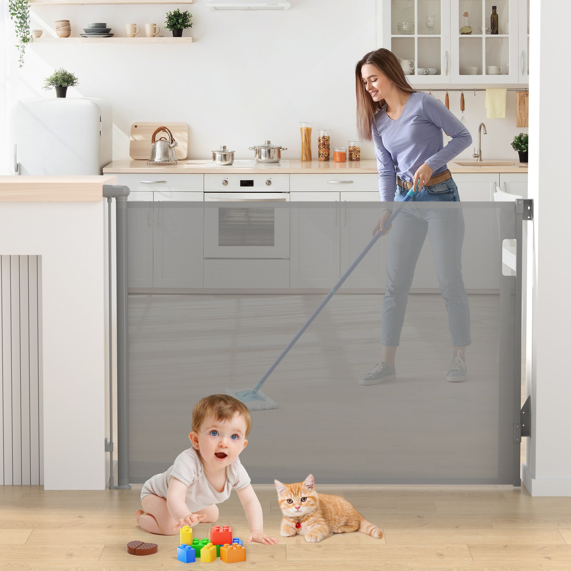 Vomeast Retractable Mesh Baby Gates, Extends up to 55in Wide, 37.4in Tall Safety Dog Gates for Stairs Doorways Hallways(Grey)